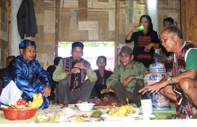 Gìa làng cùng các trưởng họ thực hiện nghi thức cúng thần linh