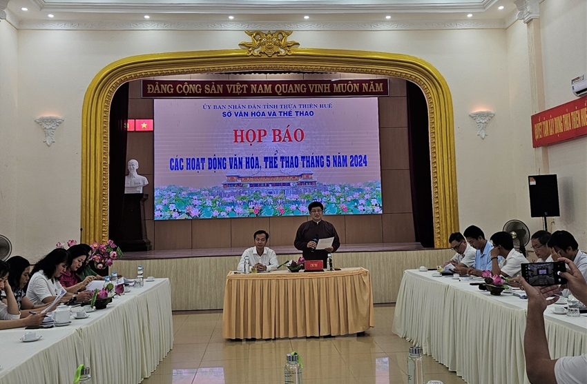 | Ông Phan Thanh Hải – Giám đốc Sở Văn hóa và Thể thao trao đổi tại buổi họp báo |