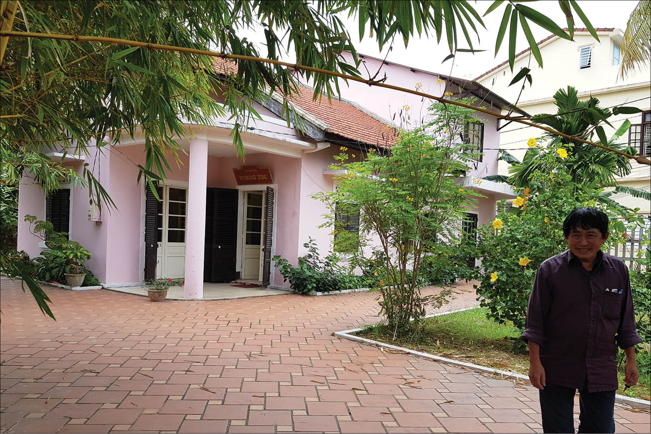 Qua một số mối liên kết, chúng tôi tìm về ngôi từ đường họ Hoàng tộc nằm gần cuối hẻm 162 đường Nguyễn Sinh Cung thuộc phường Vỹ Dạ, TP. Huế. Một ngôi nhà theo lối kiến trúc cổ kính pha nét Á – Âu hiện ra trước mắt, một khóm trúc vàng lất phất khiến chúng tôi liên tưởng ngay câu thơ “lá trúc che ngang mặt chữ điền”. Biết chúng tôi đến tìm hiểu về giai thoại của nàng thơ Kim Cúc, ông Hoàng Phước Thiện – người hương khói cho từ đường và cũng là người gọi bà bằng cô (người Huế gọi o) sau một hồi đắn đo mới quyết định trò chuyện.