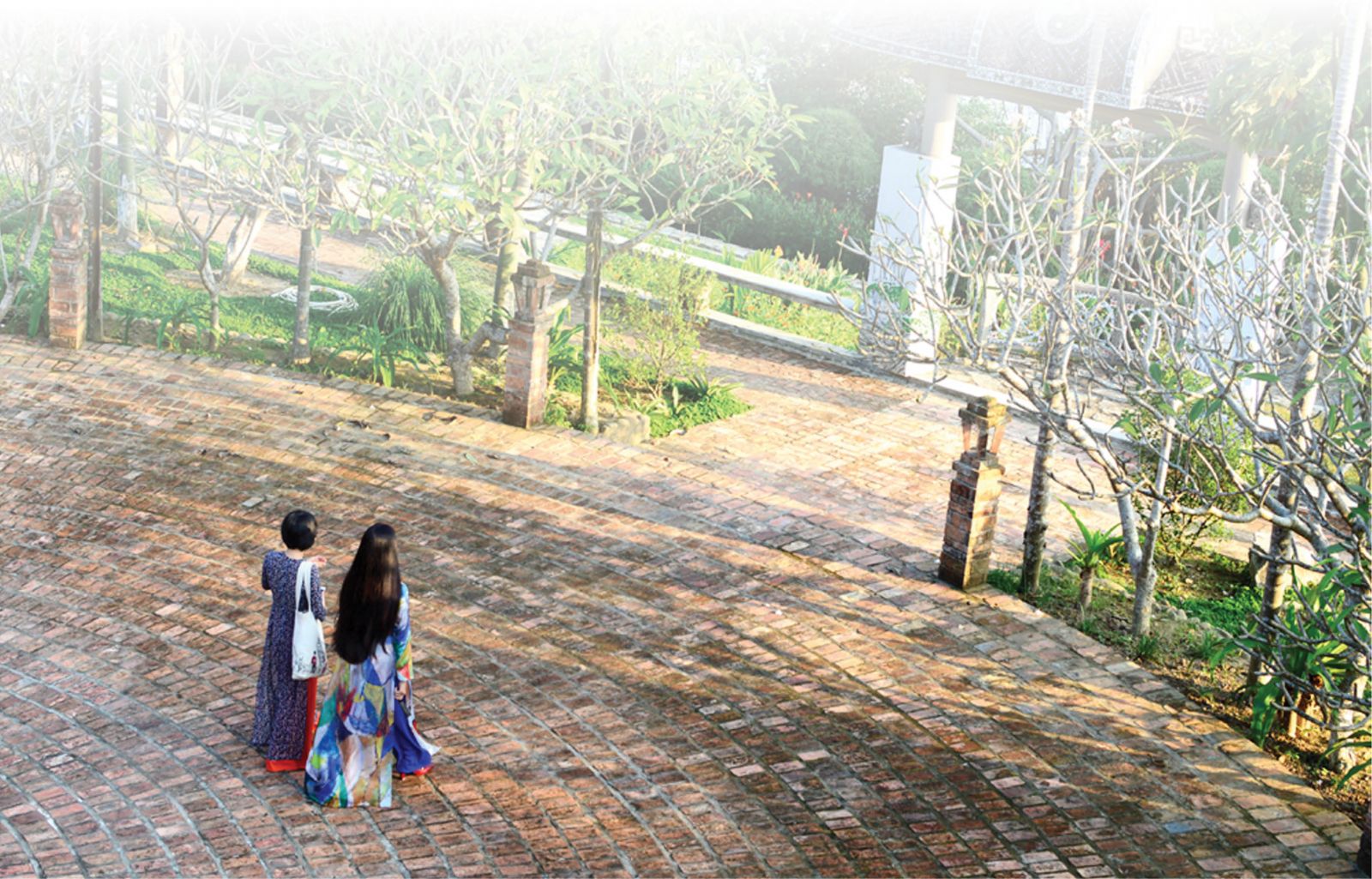 À, đó là hình ảnh cửa ngõ, bởi nó nằm sâu trong ký ức của mình rồi. Cửa ngõ nhà mình ở đường Mạc Đĩnh Chi (TP. Huế), ngày trước có hàng chè tàu xanh mát thanh bình, là bờ rào “mềm” ngăn giữa những ngôi nhà với nhau. Lối vào có giàn hoa giấy, ba mình còn trồng một giàn nho, trong vườn nhiều cây trái… Cảnh thanh bình, yên lành ấy làm mình nhớ lắm. Mình tốn khá nhiều thời gian đầu tư suy nghĩ về cổng ngôi nhà của riêng mình, nó sẽ như thế nào, đặt ở đâu… Bởi vậy sau này Bến Xuân có 3 cổng (cổng Thiền sư, cổng Om và cổng Sen). Phía bờ sông đón khách bằng thuyền rồng, mình làm cổng Sen. Để hài hòa với nước, mình chọn hình ảnh con thuyền cách điệu làm mái. Mỗi khi sương lan tỏa từ sông lễnh loãng cả không gian, chiếc cổng như con thuyền trôi bồng bềnh trong hư ảo, nhìn rất lãng mạn.