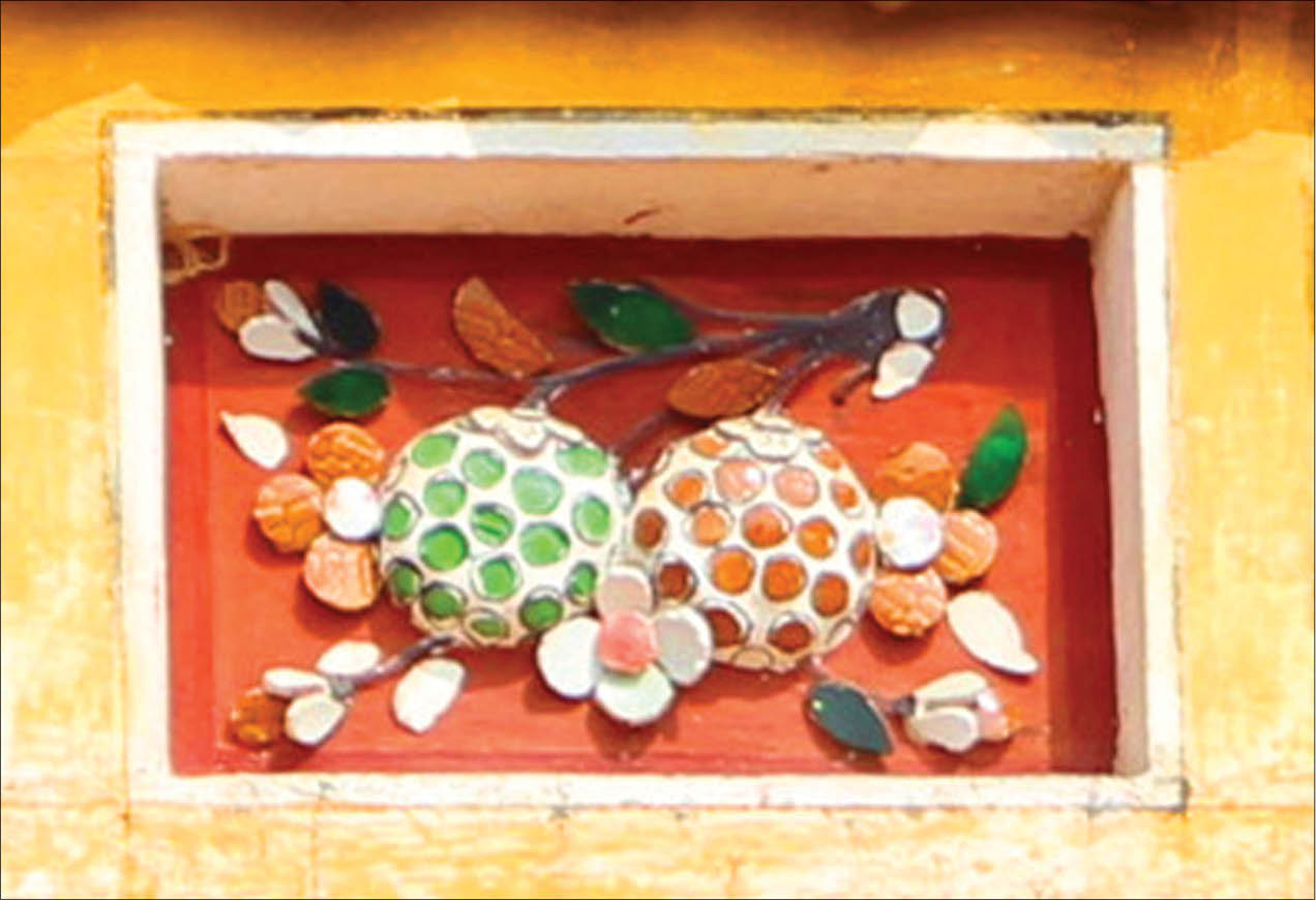 Các nghệ nhân còn sử dụng vôi vữa hay bột màu làm chất liệu trang trí. So với gỗ và sành sứ, vôi vữa ra đời muộn hơn nhưng ưu điểm là rẻ tiền và bền nên nhanh chóng được đưa vào sử dụng để đắp nổi thành các tượng tròn, hoặc phù điêu có thể chống chọi được với điều kiện thời tiết. Với bột màu, chất liệu này thường được hòa trộn với chất kết dính và được các nghệ nhân dùng bút lông tô vẽ trên các mảng tường phẳng dẹt hoặc trên các đắp nổi vôi vữa để tạo hiệu quả về tả thực. Tuy nhiên, bên cạnh thế mạnh là dễ sửa chữa, thì bột màu lại nhanh bay màu và dễ xuống cấp trong điều kiện thời tiết khắc nghiệt.
