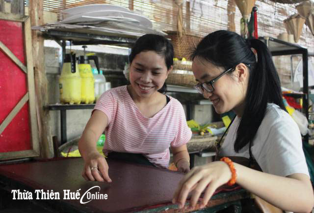 Ngọc kể: “Trước khi biết đến Trúc chỉ, em đã thử nhiều phương án khi thiết kế đồ án tốt nghiệp, như: poster dưới dạng mảng màu đồ họa, poster chất liệu màu nước nhưng chưa thể lột tả hết chất truyền thống của đề tài. Tìm một chất liệu hay kỹ thuật nào đó mang tính truyền thống để làm bật đề tài thôi thúc em khăn gói ra Huế sau khi nghe bạn bè giới thiệu về Trúc chỉ. Em đã rất mừng khi thấy Trúc chỉ là phương án tốt nhất để thể hiện đề tài mình theo đuổi. Thật tuyệt vời khi quá trình làm giấy kết thúc là sự khởi đầu cho quá trình sáng tạo nên một tác phẩm nghệ thuật”.