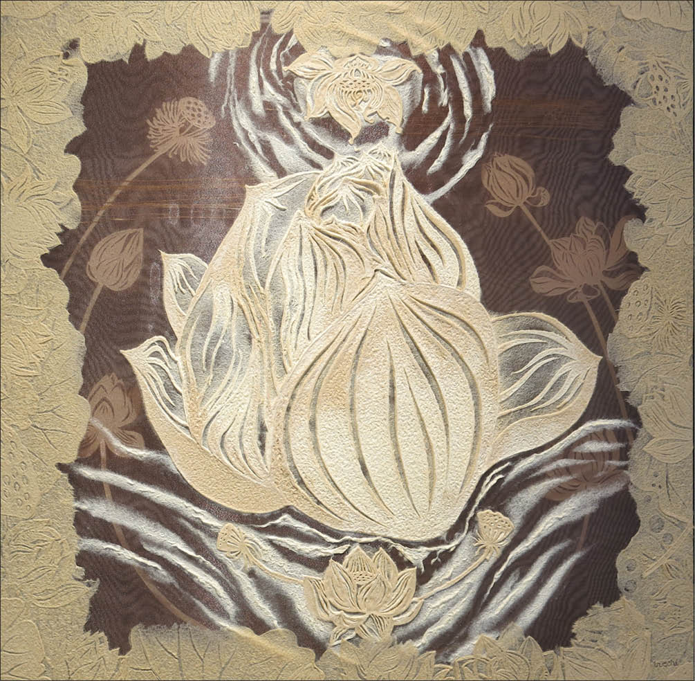 Tác phẩm “Khai hoa” bằng đồ họa Trúc chỉ. Ảnh: M. Hiền