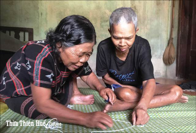 2 - Trong lúc chuyện trò cùng già Ku Ro, bà Plup Kăn Đol xâu từng hạt cườm bé như hạt sạn vào chiếc dây nhỏ chen vào câu chuyện: “Ông ấy già rồi, không mần chi được. Chừ vợ chồng tui sống nhờ 1,4 triệu đồng tiền từ chế độ chính sách và xâu cườm bán cho bà con trong thôn. Xâu 3-4 ngày được 50 nghìn đồng”. Mãi chuyện, tôi không để ý bà Plup Kăn Đol là vợ của già Ku Ro. Như hiểu ý, già Ro hướng mặt về phía Long, nói một tràng dài bằng ngôn ngữ Tà Ôi. Lát sau, Long quay sang bảo: “già Ro nói may mà cưới được bà Đol. Lúc trước sống và làm việc trong rừng sâu, hai người đều phục vụ cách mạng, có nhiệm vụ gùi hàng cho quân y tại bản A Bui (trên đất Lào). Một hôm bà Đol gùi hàng đi qua cây cầu treo bắc qua suối. Cầu khó đi trong khi gùi hàng nặng, bà Đol nhờ mọi người giúp đỡ, ông Ro giúp bà qua suối, thế là có vợ luôn”.
