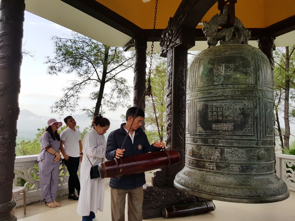 Sau khi hành lễ, mọi người tìm đến tháp chuông gần đó để thỉnh chuông, nguyện cầu bình an