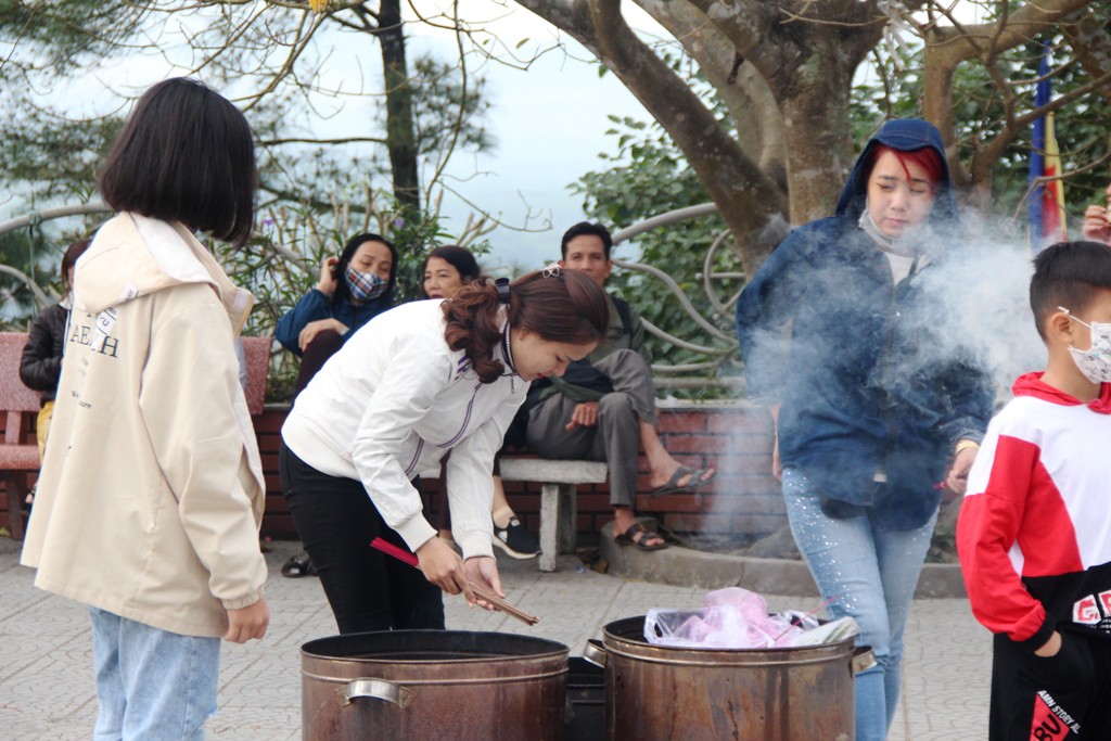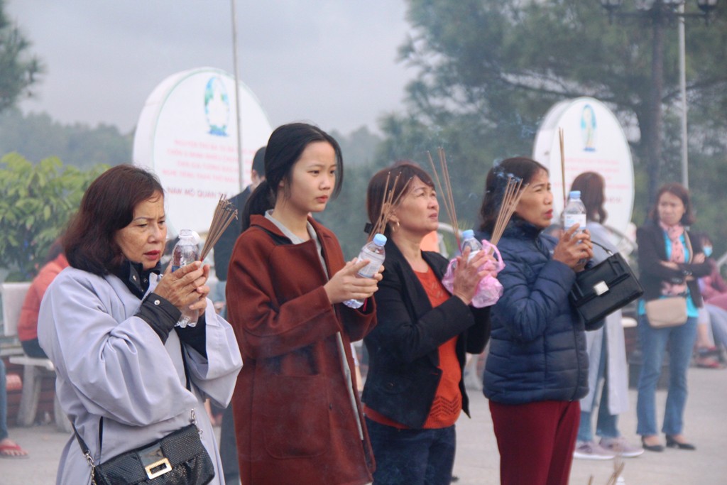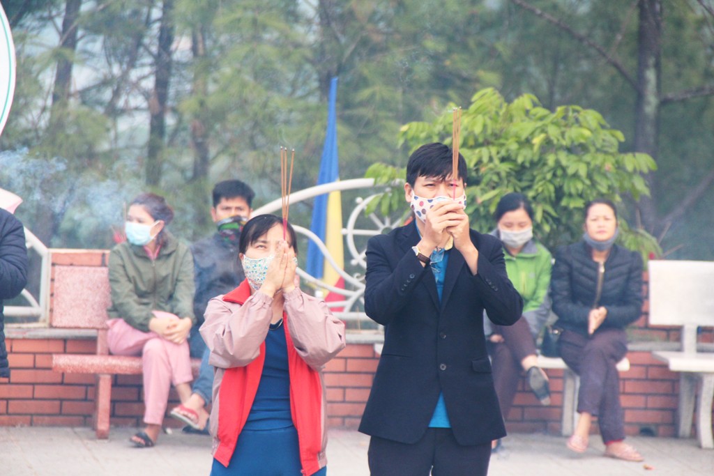 Tuy nhiên, khác với mọi năm, dòng người đi lễ ở đây vắng lặng hơn, không có cảnh chen chúc, đông đúc. Thay vào đó, mọi người thoải mái, nhẹ nhàng hành lễ. Nhiều người đeo khẩu trang và làm lễ rất nhanh.