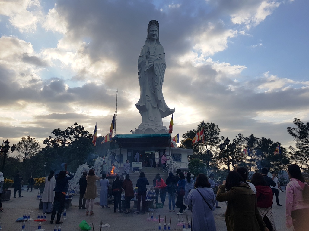 Khác với mọi năm, dòng người đi cầu nguyện ở Trung tâm du lịch tâm linh Phật giáo Quán Thế Âm ít hơn rất nhiều, ai ai cũng lặng lẽ