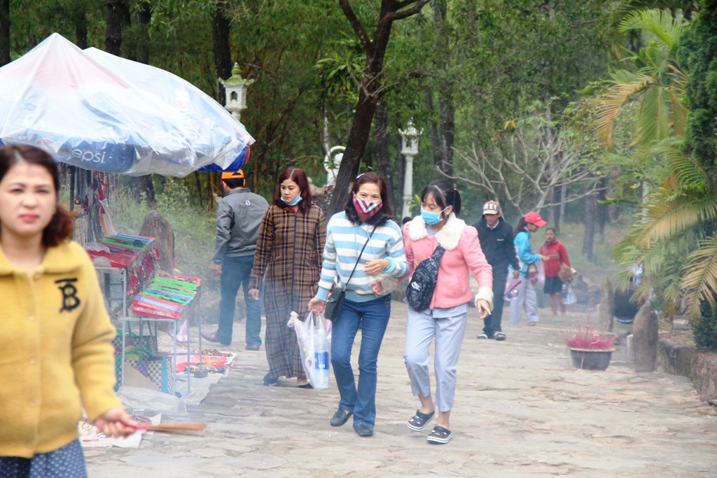 Mọi năm đường dẫn lên Trung tâm du lịch tâm linh Phật giáo Quán Thế Âm đông kín người, nhưng năm nay dòng người thưa thớt