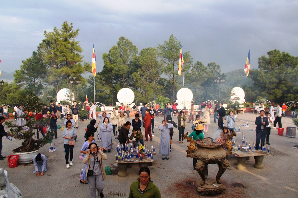 Ngay từ sáng sớm rằm tháng Giêng, nhiều người đã tìm đến Trung tâm du lịch tâm linh Phật giáo Quán Thế Âm để cầu nguyện