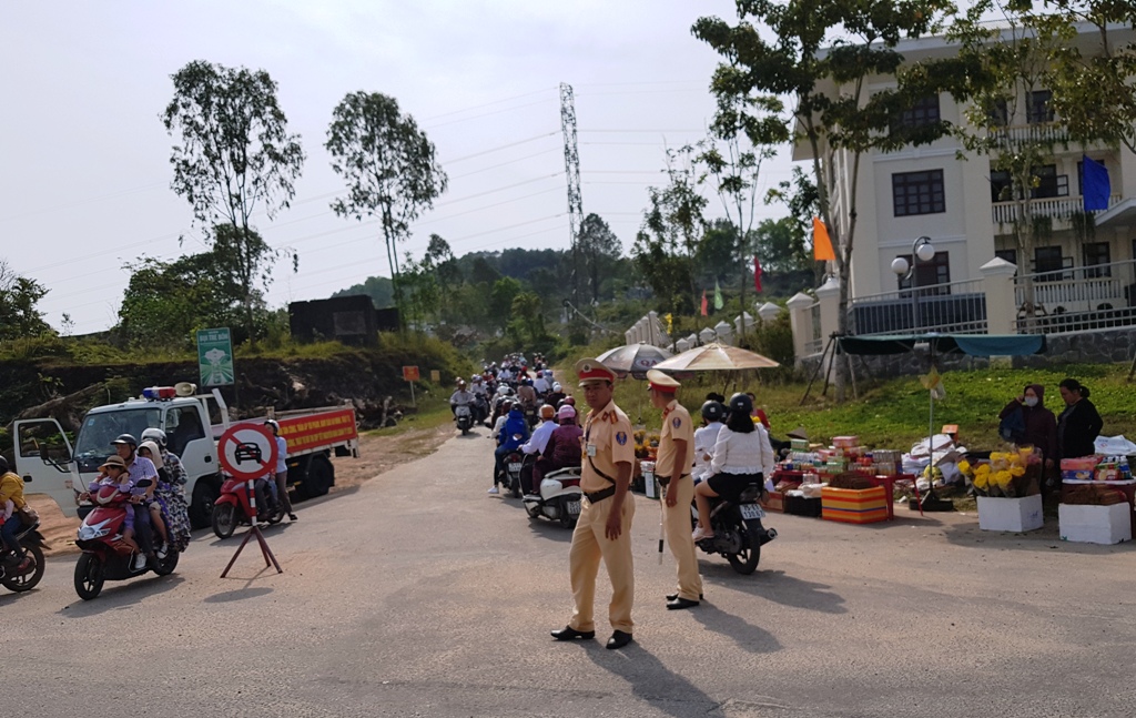 Lực lượng CSGT điều tiết giao thông trên đường Võ Văn Kiệt đảm bảo an toàn cho người đi mộ, lễ chùa
