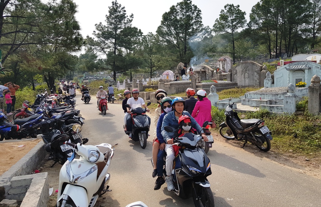 Từ sáng sớm, nhiều tuyến đường dẫn về các nghĩa trang tấp nập dòng người đi viếng mộ