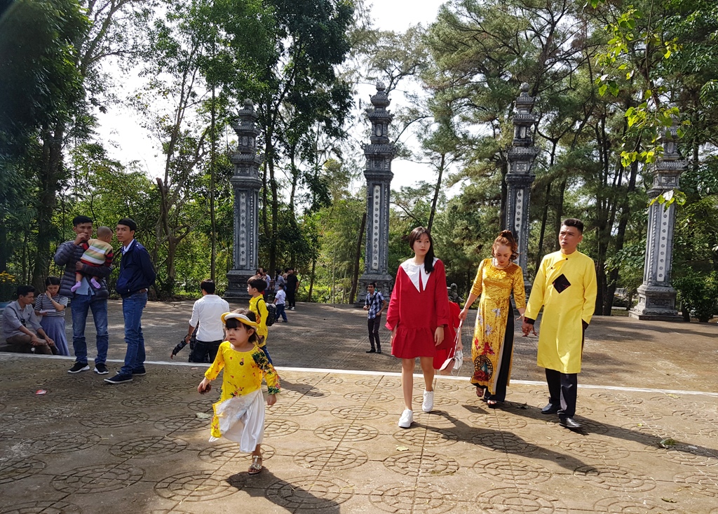 Khắp các tuyến đường như Ngự Bình, Minh Mạng, Lê Ngô Cát, Thiên Thai, Tam Thai, Võ Văn Kiệt…, dòng người di chuyển xe cộ tấp nập. Cứ theo thường lệ, sau khi thắp hương lên mộ phần của những người thân đã khuất, dòng người lại kéo nhau về các ngôi chùa để cầu bình an, hái lộc đầu năm.