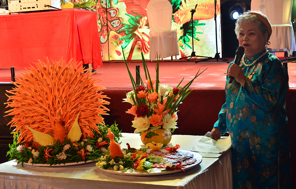 Nghệ nhân ẩm thực Tôn Nữ Thị Hà giới thiếu món nem công chả phượng đến thực khách tại lễ hội ẩm thực được tổ chức gần đây