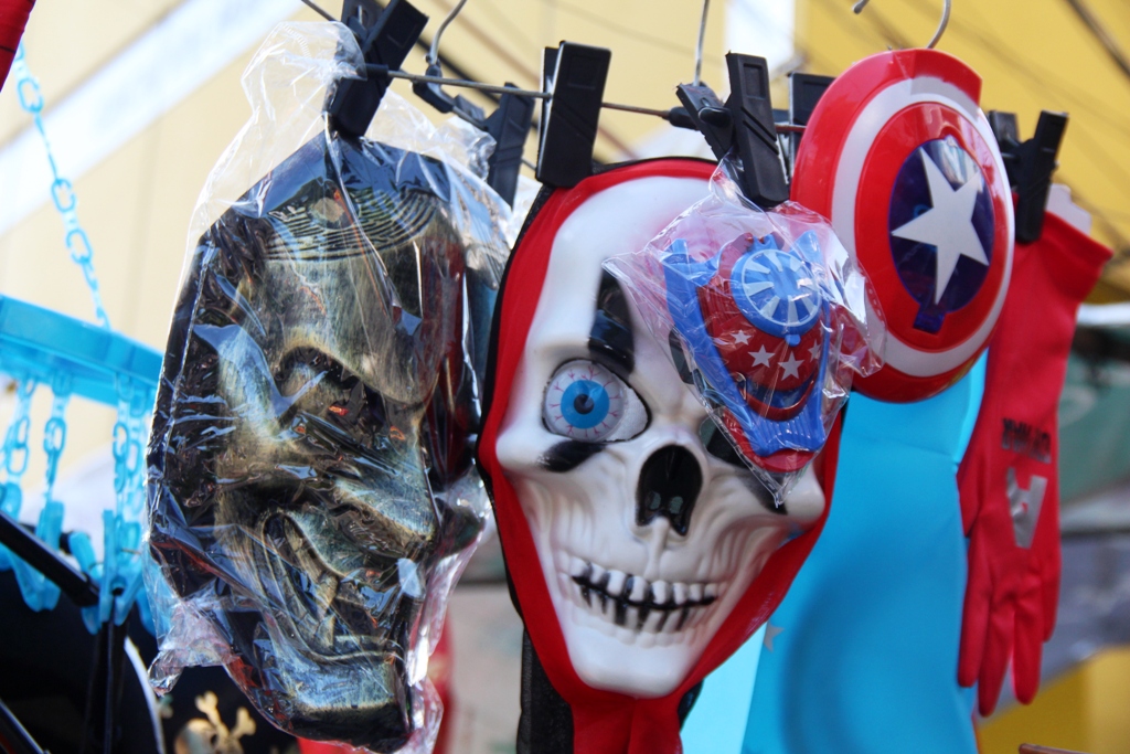 Những chiếc mặt nạ với đủ loại rùng rợn khác nhau được bày bán phục vụ cho lễ hội