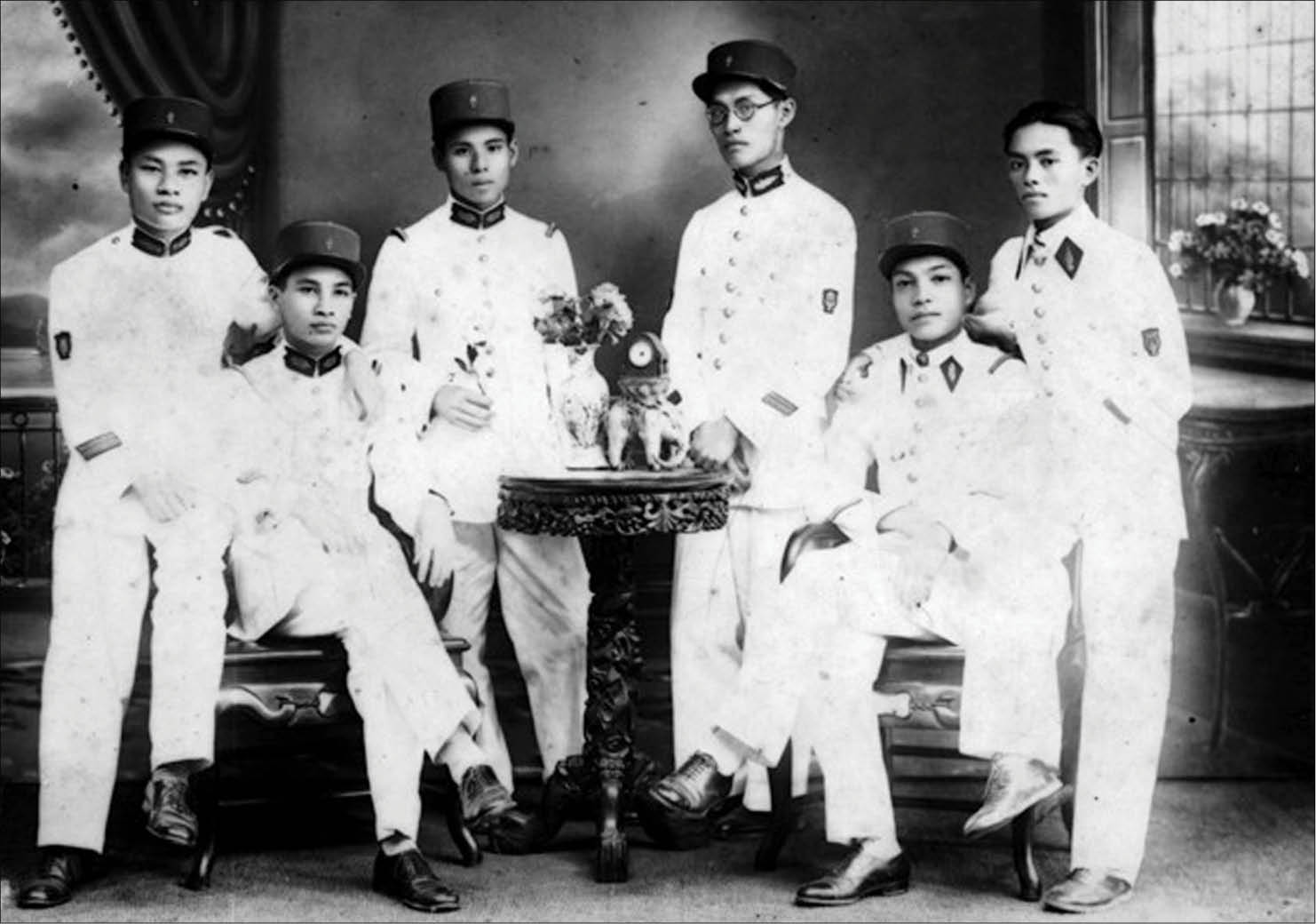 Các nhạc công dàn nhạc Kèn hơi Huế. Trong ảnh có cụ Ngô Văn Lệ (người ngồi bên phải), người Hương Phong (Hương Trà), thổi kèn Trompette và là một Đội trưởng đội kèn thời Pháp thuộc. Ảnh: TL