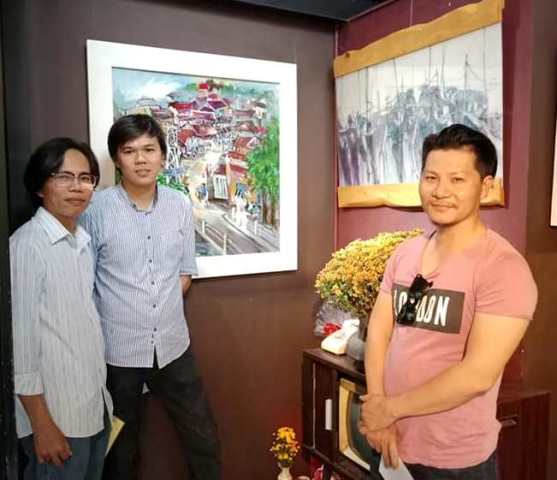 Họa sĩ tham gia triển lãm "Phố kỷ niệm". Ảnh: Huế Ta