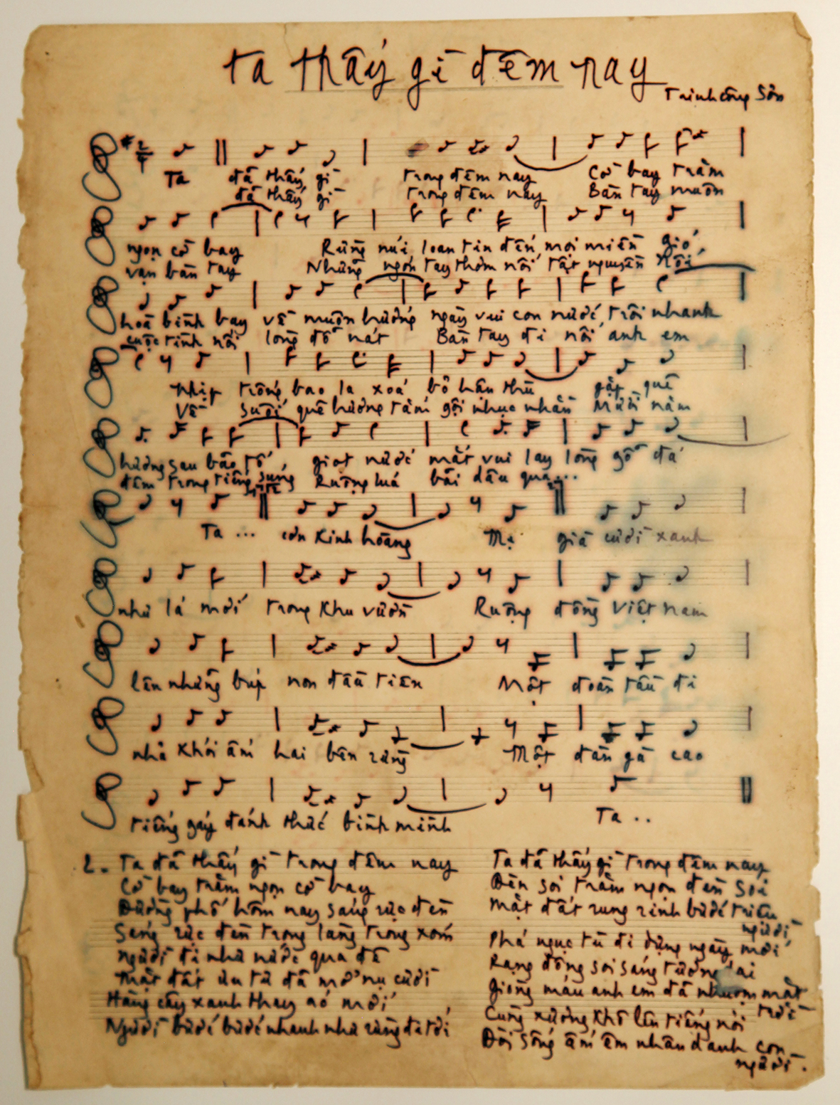 Bản chép tay ca khúc "Ta thấy gì trong đêm nay" của nhạc sĩ Trịnh Công Sơn