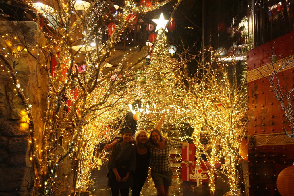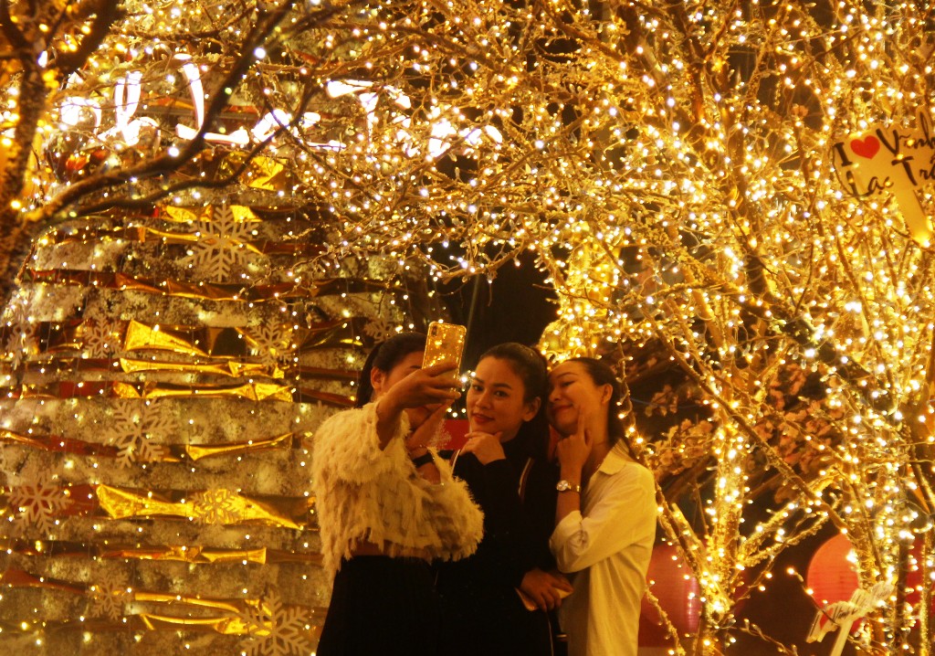 Một nhóm các bạn nữ cùng chụp hình để lưu lại khoảnh khắc của mùa Giáng sinh 2019