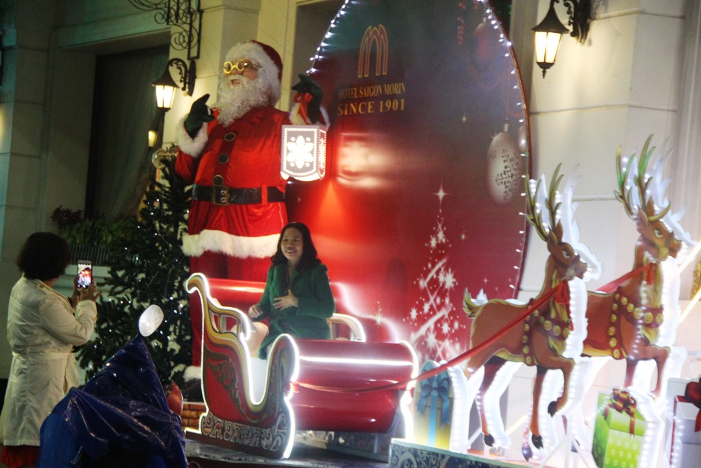 Góc trang trí xe kéo tuần lộc trên đường Lê Lợi thu hút người qua lại chụp hình