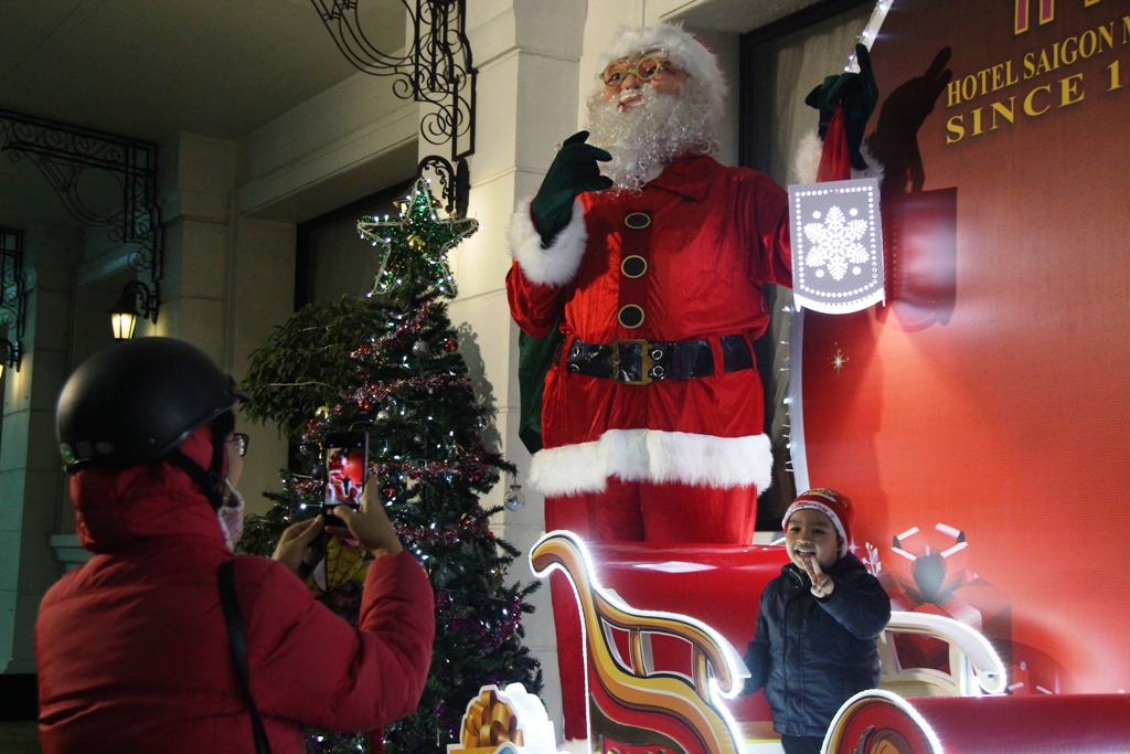 Cũng như mọi năm, không khí Giáng sinh thường đến khá sớm, nên nhiều người đã tận hưởng không khí này từ khi nó còn chưa đông đúc. Họ tranh thủ tạo dáng bên những cây thông lớn được trang trí hoành tráng, lung linh màu sắc hay bên các ông già Noel cùng các chú tuần lộc… cùng tiếng nhạc rộn ràng để ghi lại khoảnh khắc ấn tượng.