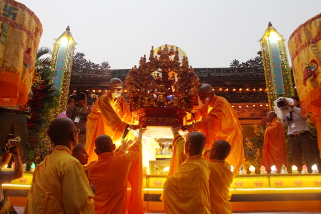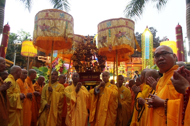 Đoàn rước Phật về đến Tổ đình Từ Đàm nơi nghi lễ chính thức Phật đản Phật lịch 2561 sẽ diễn ra vào ngày 10/5 (15/4 âm lịch)