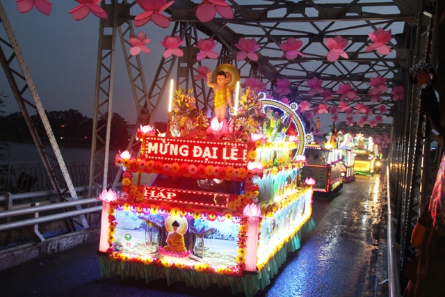 Đoàn rước Phật bằng xe hoa qua cầu Trường Tiền