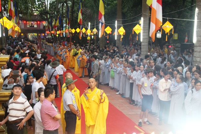 Đông đảo tăng ni phật tử và người dân trên địa bàn tỉnh về chùa Diệu Đế khá sớm để chờ thực hiện nghi lễ