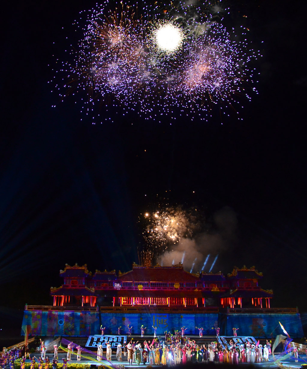 Tiết mục coda kết thúc “Huế dáng hình quê hương” kết hợp với pháo hoa nghệ thuật