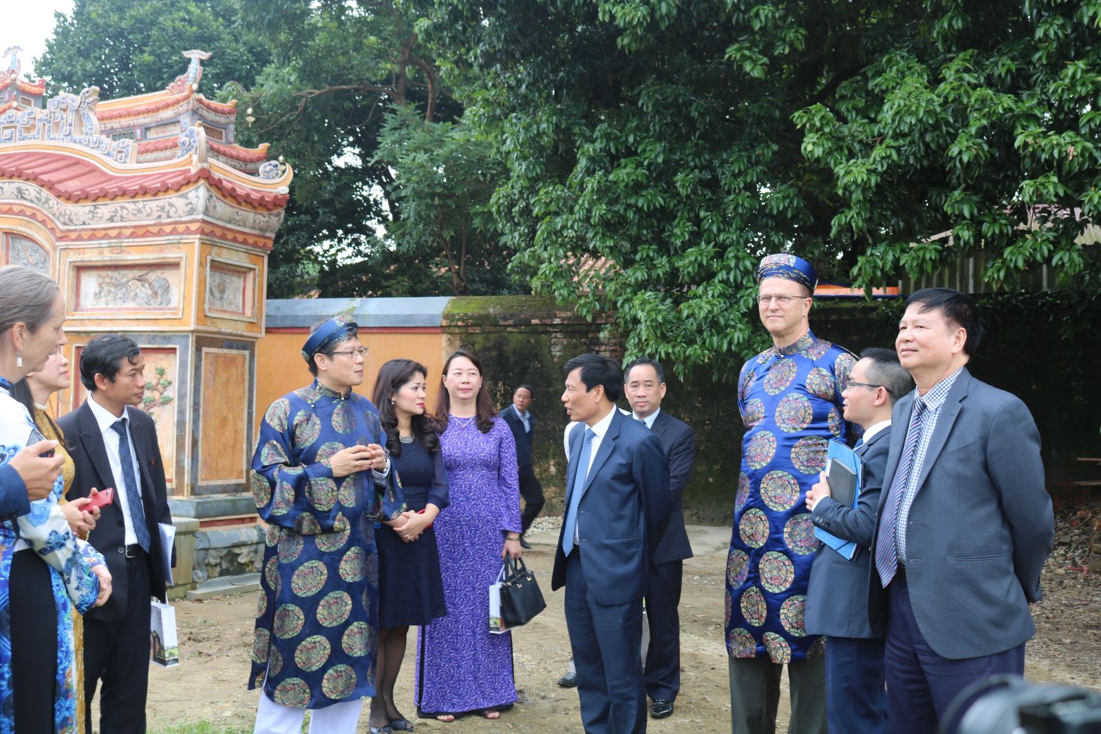 Đại biểu tham quan không gian di tích điện Phụng Tiên