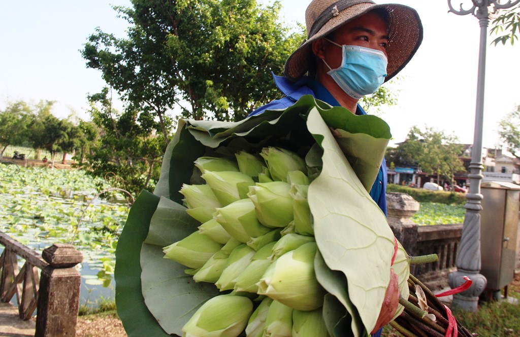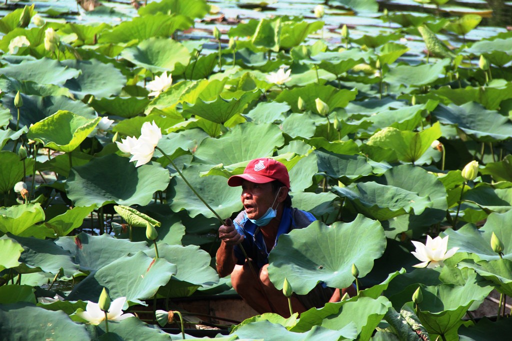 Sen trắng được thu hoạch sau khi trồng thành công trở lại ở hồ Tịnh Tâm