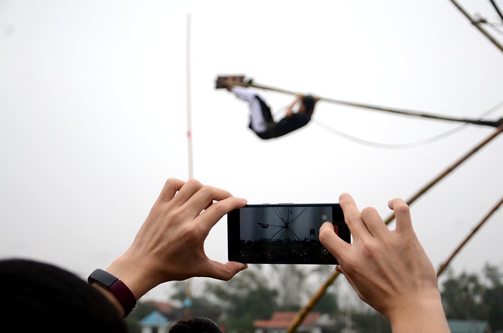Đến với hội đu tiên truyền thống này, còn để cảm nhận cảm giác phiêu lưu, diệu kỳ với những tà áo dài phất phới trên giàn đu. Tiếng hò reo cổ vũ nhiệt tình của đông đảo người dân và du khách đến tham dự, tạo nên khung cảnh vừa thanh bình và nhộn nhịp, vui tươi.