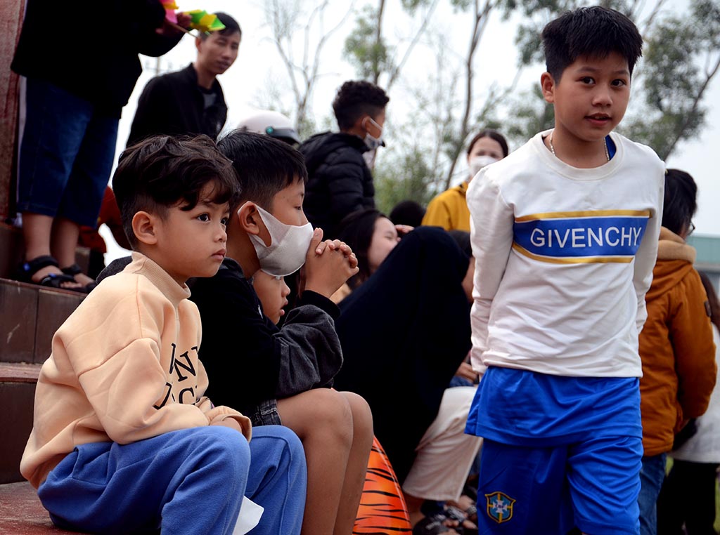 Nhiều em nhỏ thích thú xem hội đu truyền thống