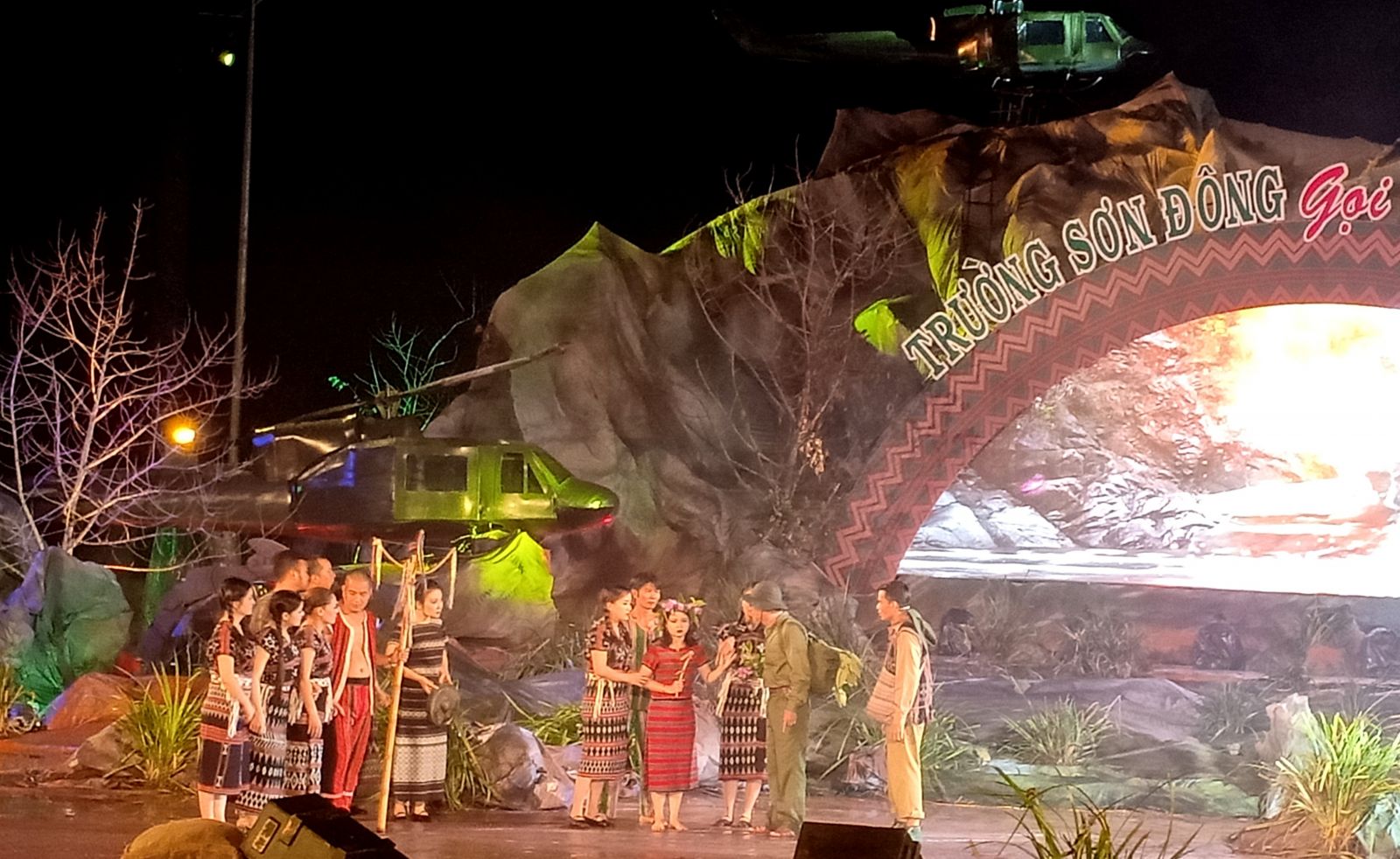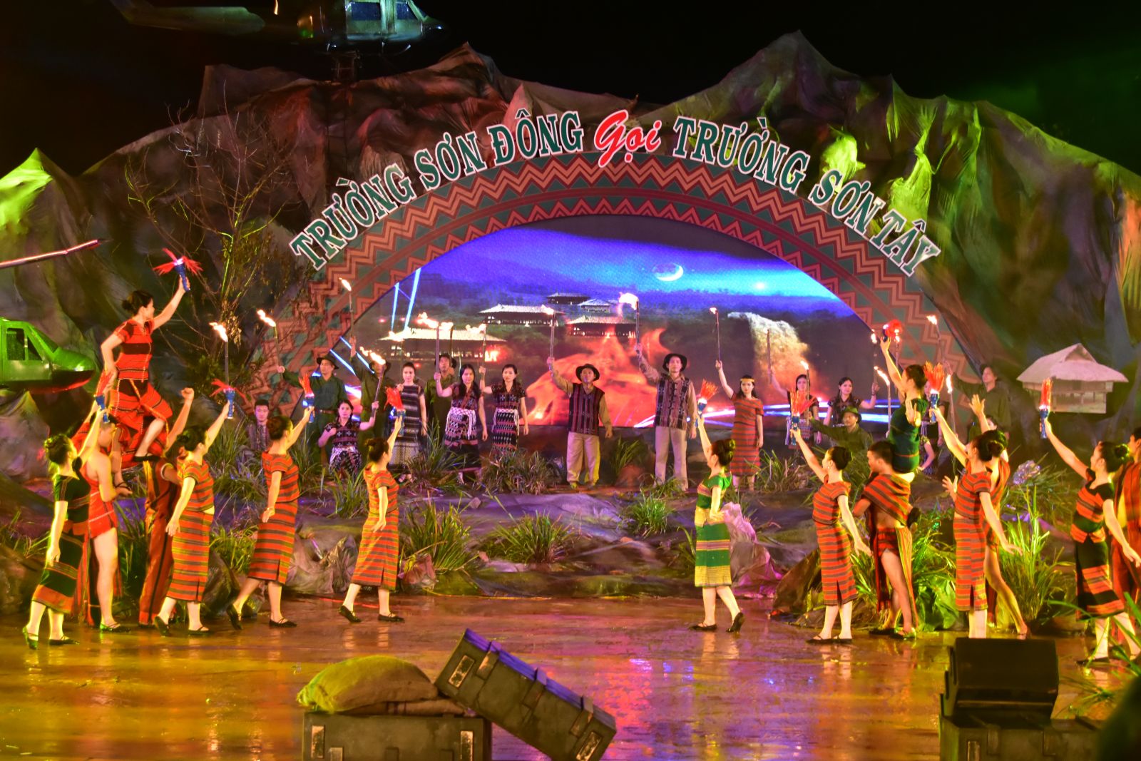 “Trường Sơn Đông gọi Trường Sơn Tây - Đường qua A Lưới” được xây dựng trên hồi ức của nữ anh hùng LLVTND Hồ Kan Lịch thông qua các hoạt cảnh tái hiện ký ức về một thời chiến đấu khốc liệt, hào hùng, những khoảnh khắc làm nên lịch sử và cả những câu chuyện tình yêu thời chiến.