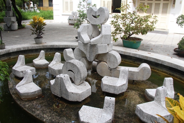 Bên cạnh những tác phẩm nguyên viện thì vẫn còn nhiều tác phẩm điêu khắc lớn đang trưng bày ngoài trời bị hư hỏng nặng