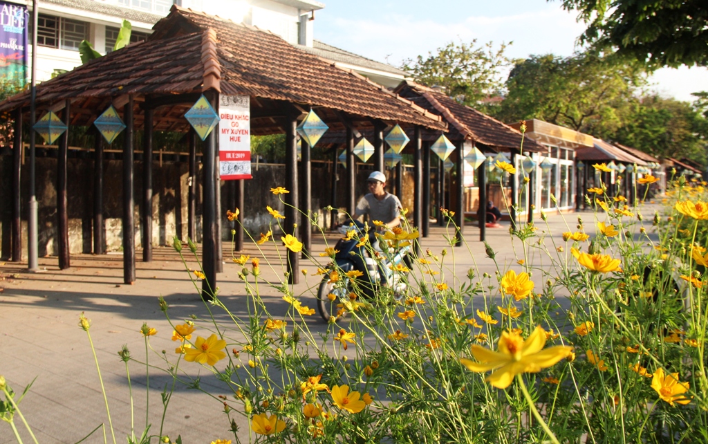 Không gian của các địa điểm diễn ra Festival Nghề truyền thống Huế 2019 được trang trí rất nhiều hoa