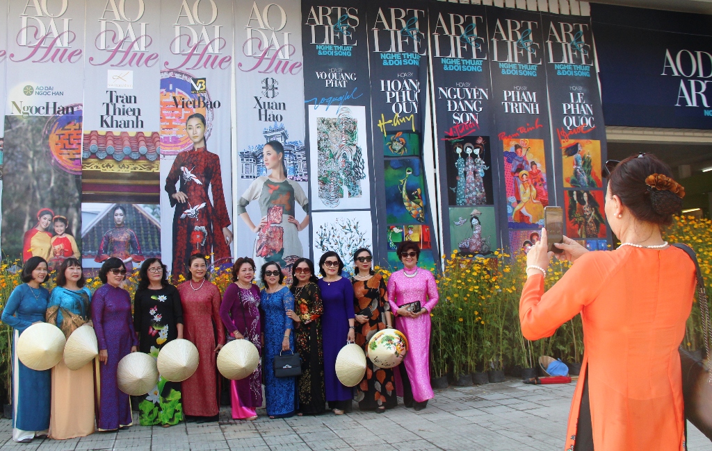 Trong khi đó, nhiều du khách cũng tranh thủ xuống phố chụp hình ở những không gian diễn ra lễ hội