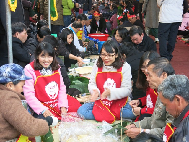 Các đội thi tài nấu bánh chưng, bánh tét