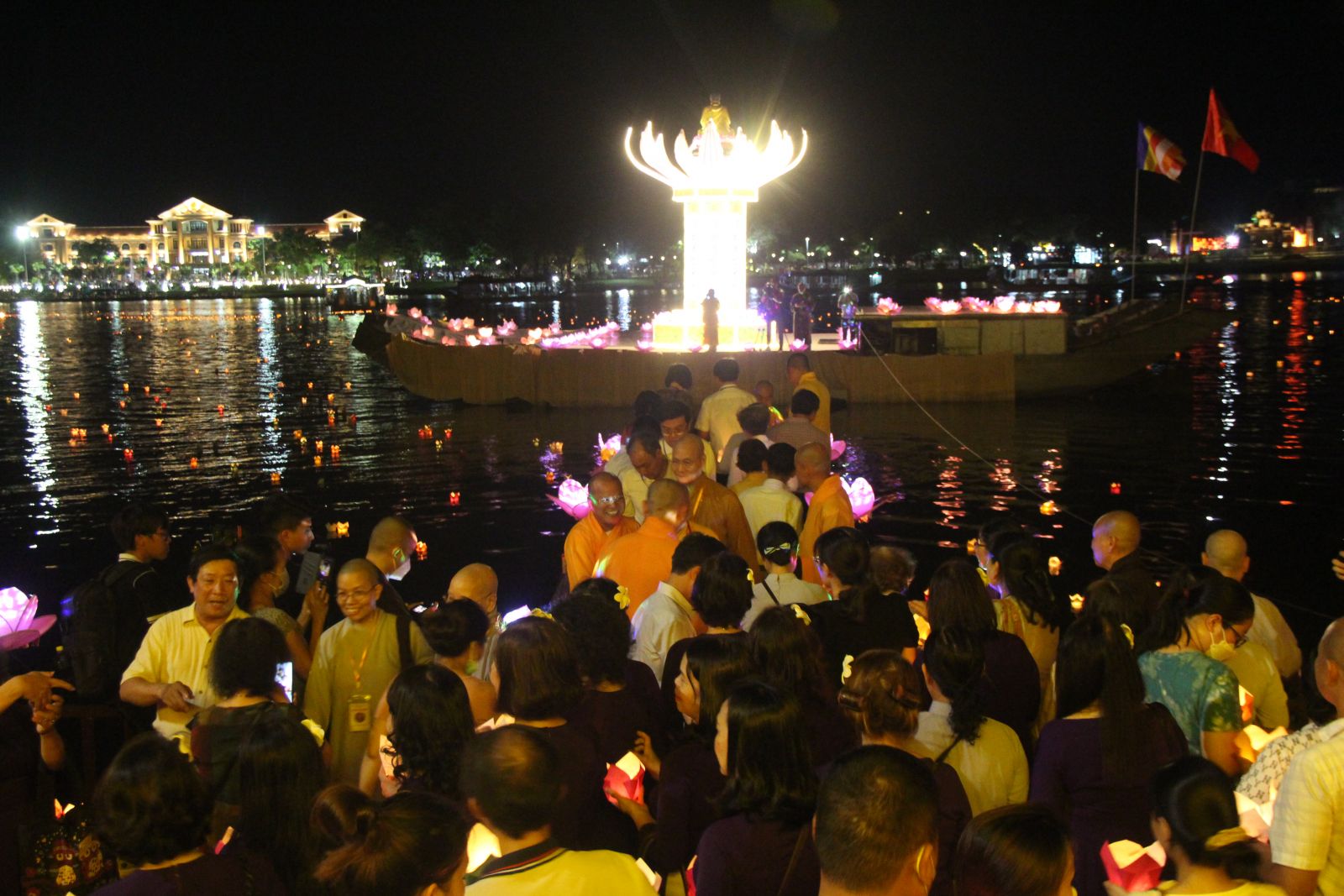 Tăng ni, Phật tử, quan khách tham dự đêm hội đã thả xuống dòng sông Hương 20.000 ngọn hoa đăng. Nghi lễ thả hoa đăng cầu mong đất nước thanh bình, mưa thuận gió hòa, nhân dân an cư lạc nghiệp, thế giới thoát nạn chiến tranh – thiên tai – dịch bệnh, chúng sanh an lạc.