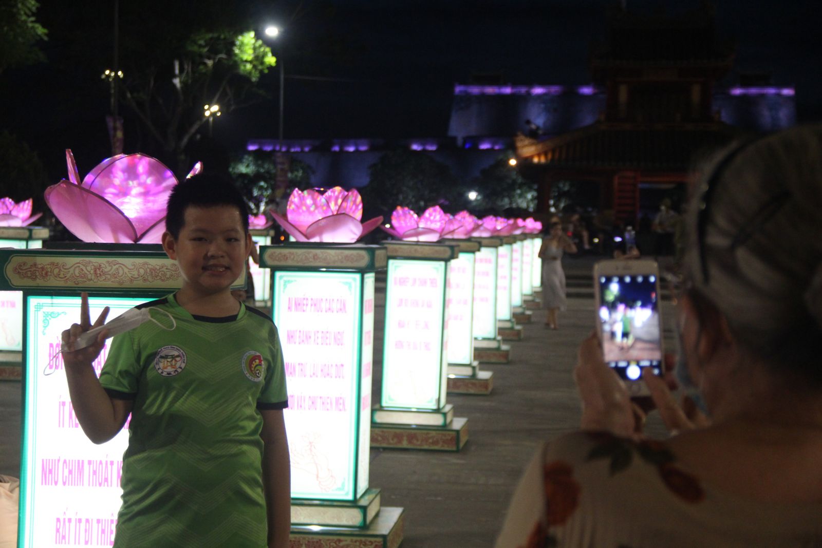 Điểm thả hoa đăng ở phía trước Nghinh Lương Đình, nhìn qua bên kia đường Lê Lợi