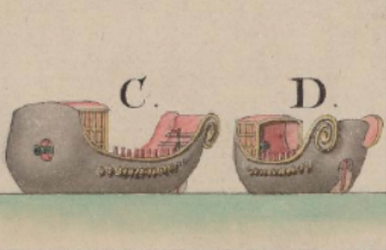 Đi dạo dọc sông Hương, P. Poivre từng thấy nhiều chiến thuyền trong các xưởng thuyền, có thể lên tới 400 chiếc rất to lớn, bên ngoài được trét một lớp sơn đen bóng rất đẹp, được chạm trổ mạ vàng nổi lên nhiều hình ảnh, nhất là ở đầu mũi và lái thuyền. Điểm đáng chú ý là, có khoảng 100 con thuyền chỉ sử dụng cho việc giải trí của nhà vua, mỗi thuyền có từ 40 đến 60 tay chèo, thường là để kéo thuyền của nhà vua đi trên sông.