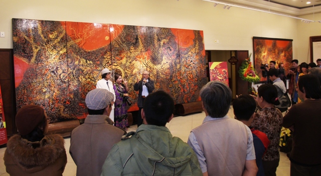 Trong 10 ngày trưng bày, hơn 20 tác phẩm bằng chất liệu sơn mài truyền thống sẽ đưa người xem vào cõi phiêu linh, khám phá không gian vũ trụ bao la với những đường nét chuyển động mạnh mẽ, cuồn cuộn theo vòng xoáy âm dương cùng những ký hiệu mang tính hình tượng.