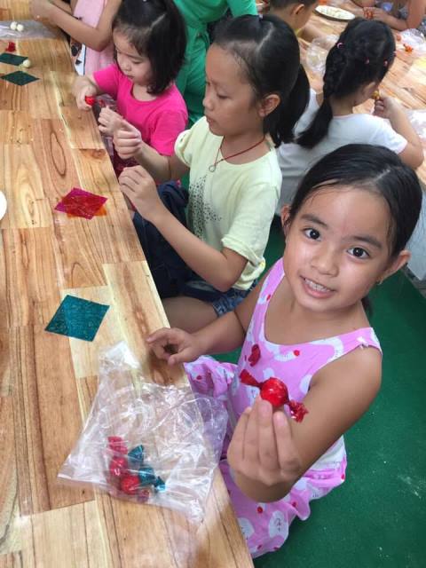 Niềm vui của các em khi tự tay làm ra chiếc bánh