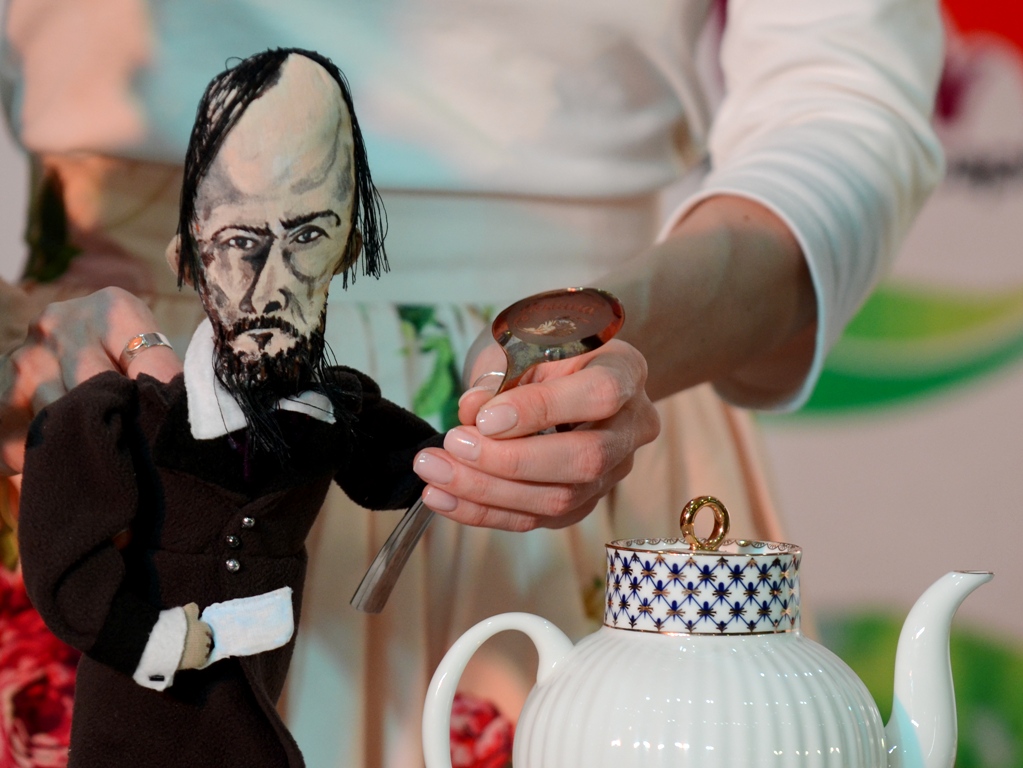 Phần thi đến từ xứ sở Bạch Dương... khi "mời" hình nộm đại văn hào Dostoievsy cùng thưởng trà, kể chuyện...