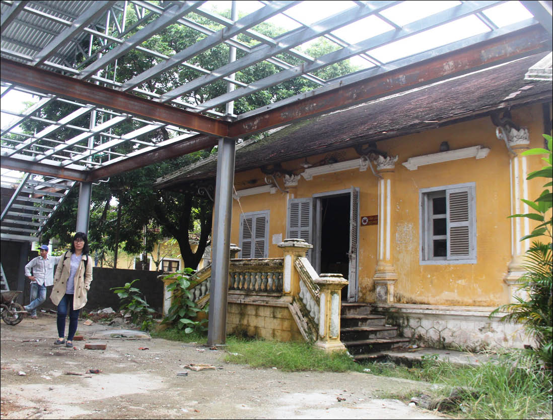 Hơn một tháng qua, khuôn viên sân vườn trước mặt nhà di sản đã bị tháo dỡ toàn bộ, thay vào đó một khối nhà được xây dựng kiên cố bằng sắt, 2 tầng, rộng hơn 300m2, chiếm toàn bộ khu đất phía trước. Hệ thống sân vườn bao gồm cổng, hàng rào bằng chè tàu, hòn non bộ… cũng gần như bị phá vỡ hoàn toàn. Bên trong ngôi nhà, các vật dụng phục vụ thi công chồng chất ngổn ngang. Công trình trên được một chủ đầu tư thuê lại của phường để làm khu tập gym.