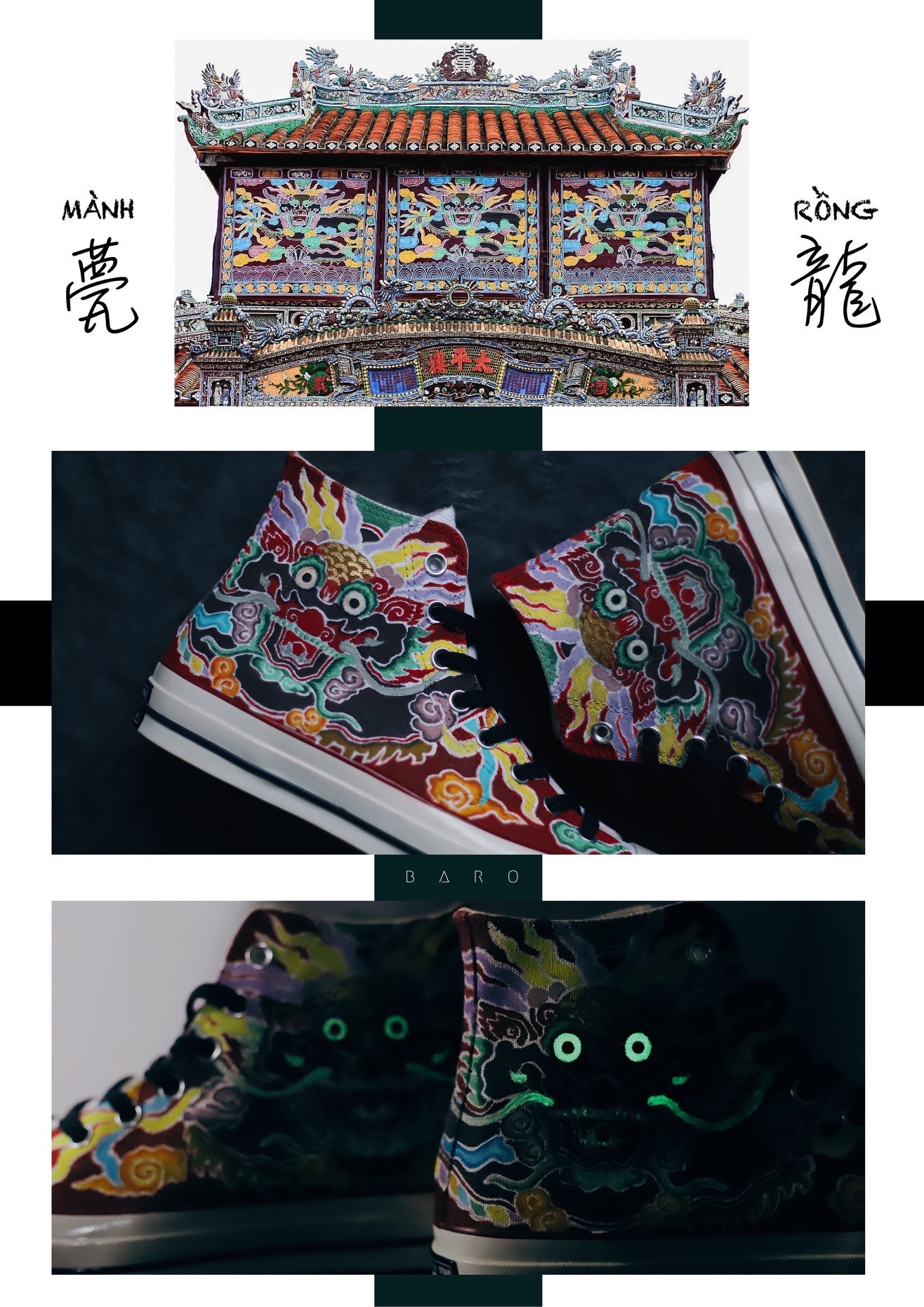 Dự án “Annam Heritage” là sự kết hợp độc đáo giữa hoa văn cổ bao gồm những hoa văn trên trang phục Nhật Bình, các trang phục của vua, thành viên hoàng tộc hay hoa văn trên các công trình cung cấm xưa cổ với đôi giày Converse hiện đại. Dự án được NTK trẻ khởi động vào ngày 20/7/2018 sau chuyến thăm quan di tích nhà cổ Huỳnh Thuỷ Lê tại Sa Đéc.