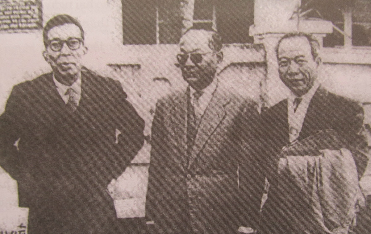 Cụ Viễn Đệ (giữa) và các thân hữu, bên trái cụ là họa sĩ Tôn Thất Đào (ảnh chụp lại từ sách 700 năm Thuận Hóa -Phú Xuân- Huế của Nguyễn Đắc Xuân)