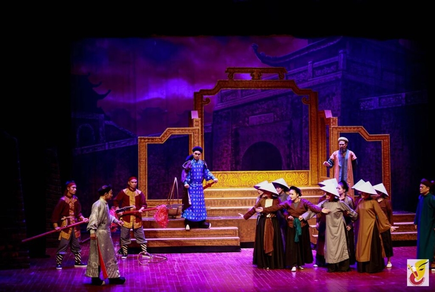 | Cảnh trong vở "Bất tử với Thăng Long của Nhà hát Cải lương Việt Nam. Ảnh: Thúy Hiền |