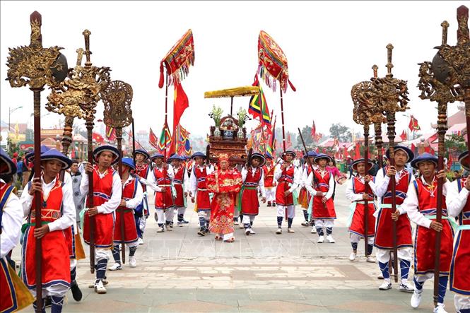 Nghi thức rước kiệu của nhân dân các xã, thị trấn thuộc vùng ven Khu Di tích lịch sử Quốc gia đặc biệt Đền Hùng trong ngày giỗ Tổ Hùng Vương năm 2017. Ảnh: Trung Kiên/TTXVN