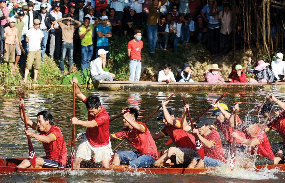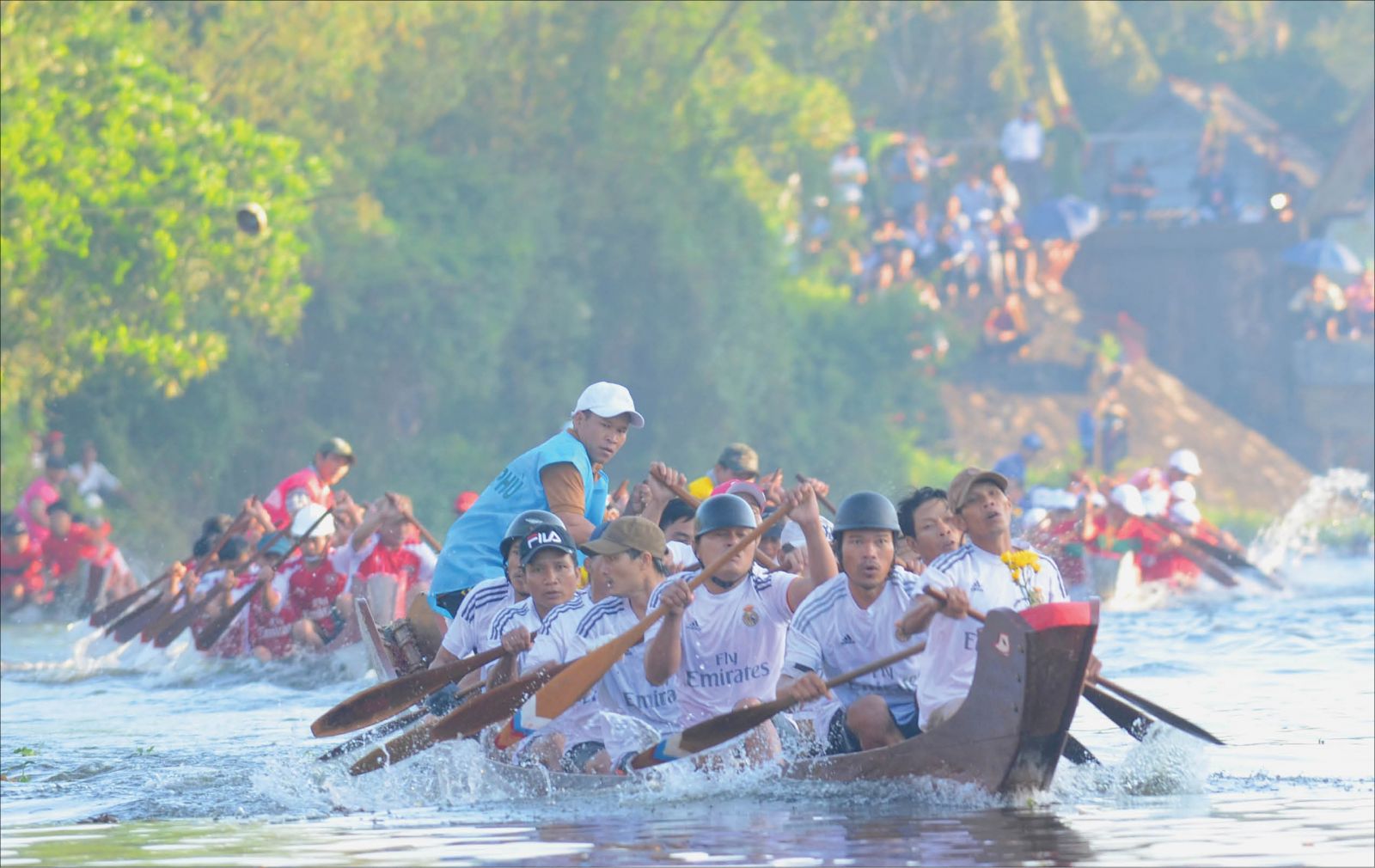 Đua trải trên sông Vực. Ảnh: VÕ NHÂN