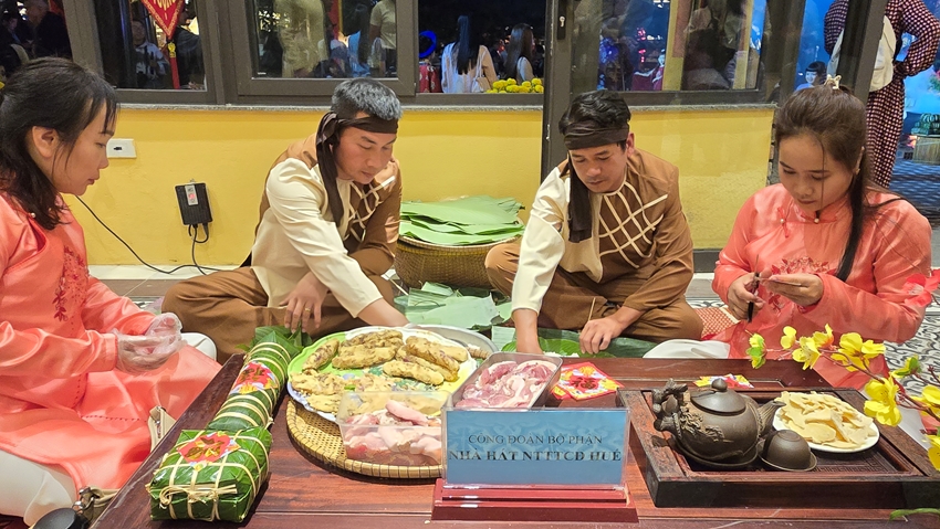Không khí Tết càng thêm rộn ràng với các chương trình biểu diễn nghệ thuật đặc sắc. Những làn điệu chầu Văn, hò giã gạo sâu lắng, cùng các ca khúc mùa xuân quen thuộc được Nhà hát Nghệ thuật Truyền thống Cung đình Huế dàn dựng công phu, tạo nên không gian nghệ thuật vừa trang trọng, vừa gần gũi, góp phần tôn vinh bản sắc văn hóa truyền thống.